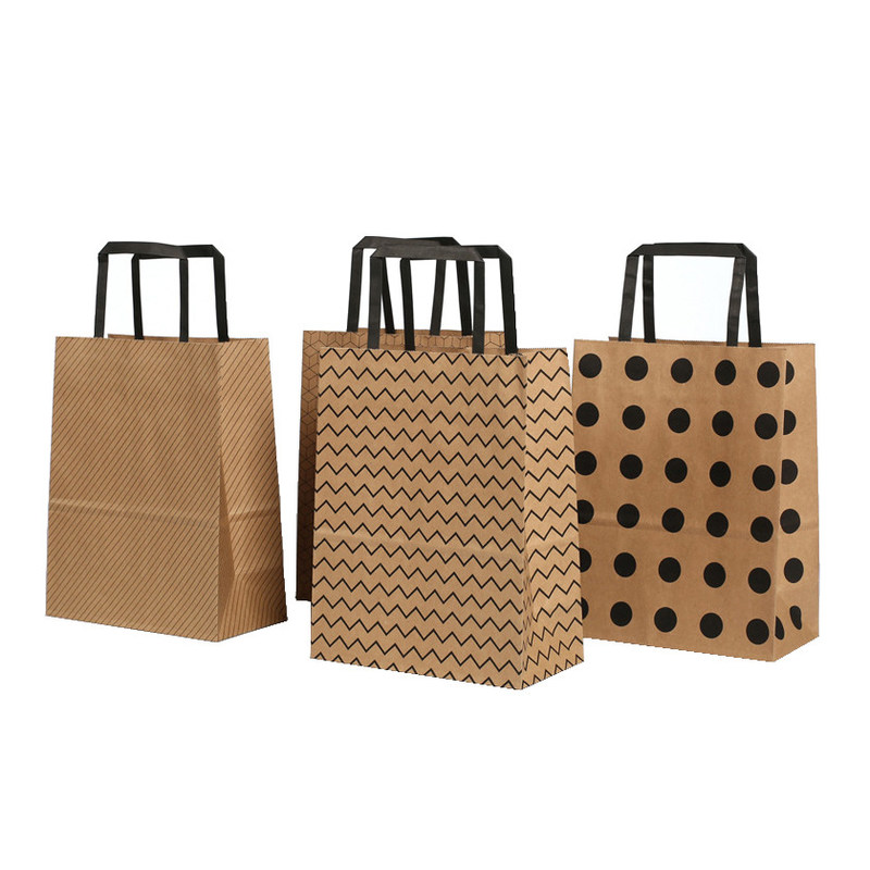 | Nombre del artículo | Compras modificadas para requisitos particulares de la bolsa de papel que empaquetan la bolsa de papel plana de Kraft de la manija para el ultramarinos de los zapatos de la ropa | ||